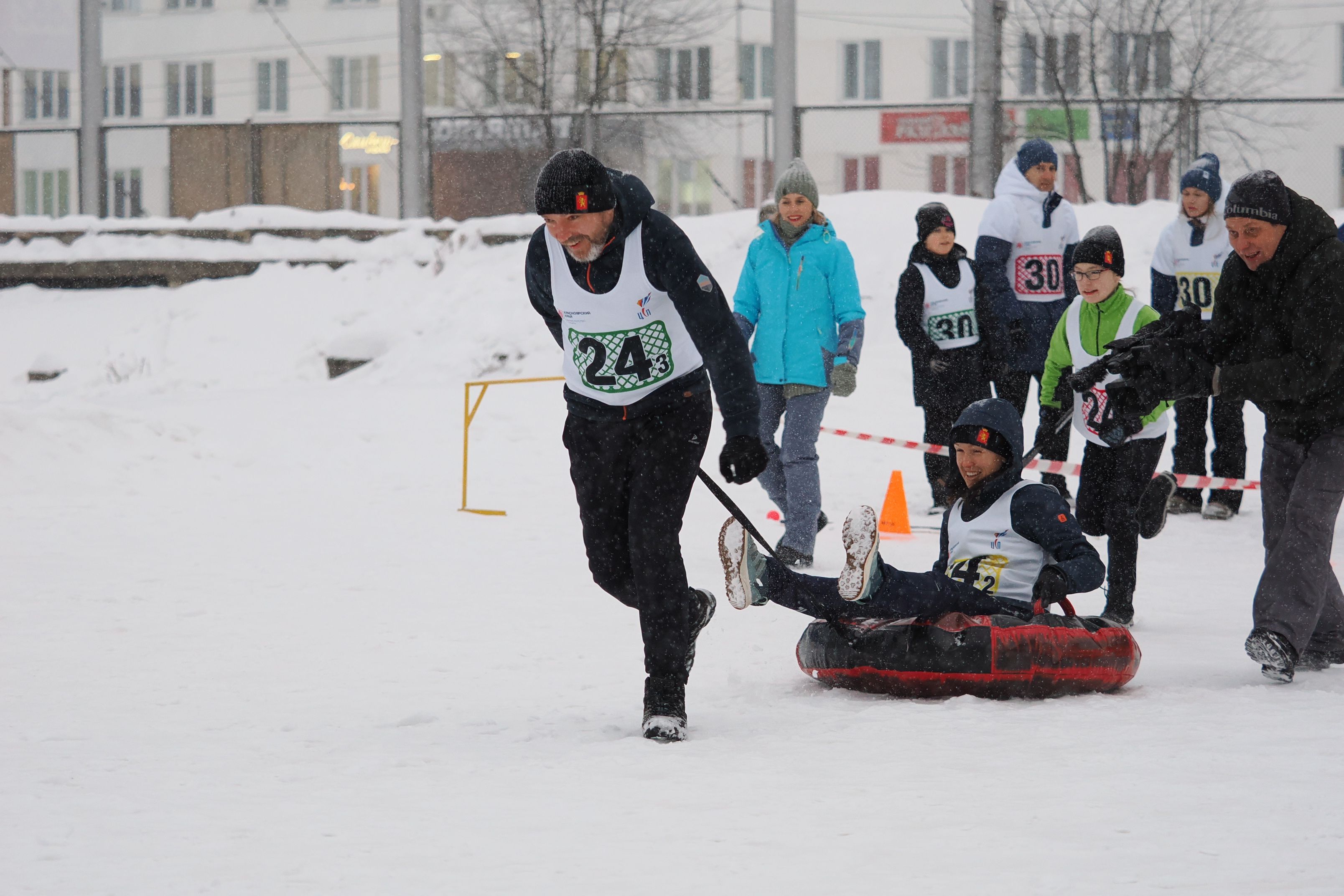 Снегопад… такого снегопада никто не ожидал, но, оказалось, что все к нему были готовы: и спортсмены, и организаторы. Вовремя почищенные площадки и предновогоднее настроение сделали свое дело – заключительные виды программы прошли по графику и на позитивной ноте. Особенную активность проявили спортивные семьи: они завершили свое выступление комбинированной эстафетой. Клюшки, коромысла и плюшки – вот ответ от горячих сердец этой зиме! И хороводы водили, и по снегу катались, и с ведрами бегали… А еще танцевали и после финиша ели вкусную горячую солдатскую кашу.